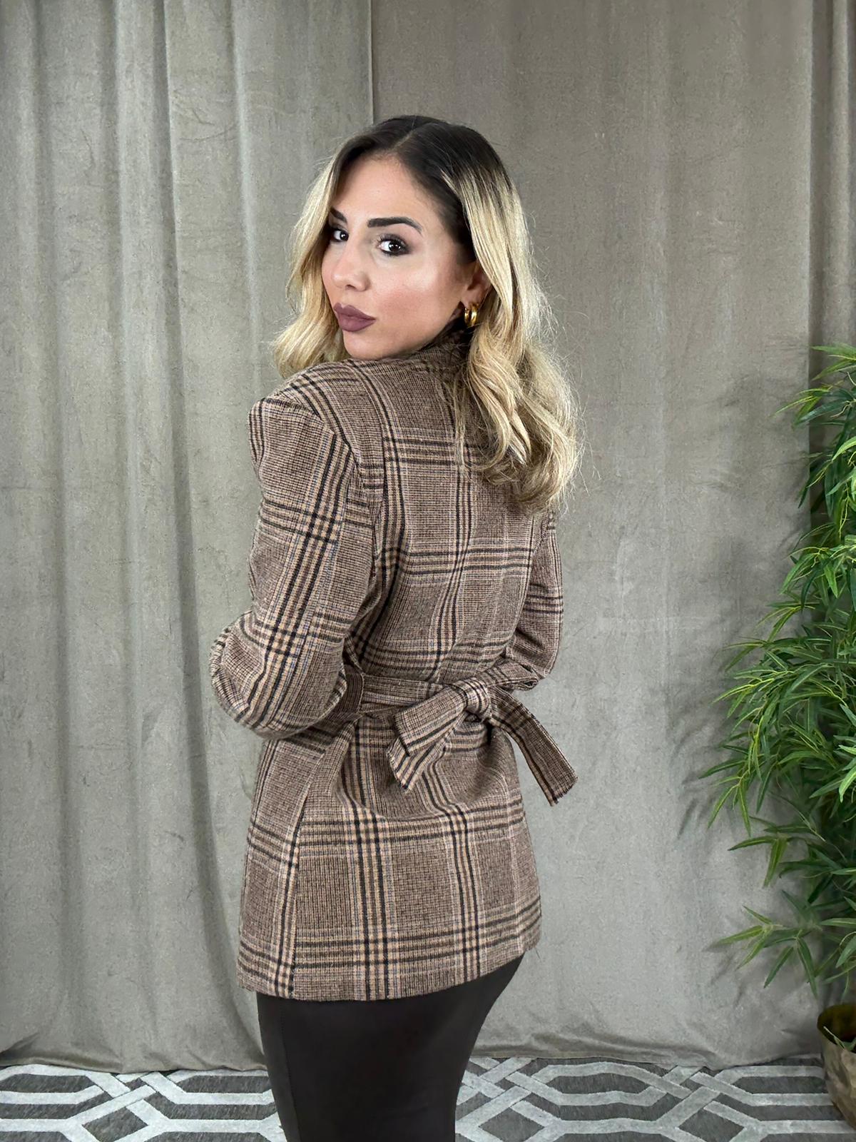 Giacca Woman A Quadretti Con Fiocco Marrone