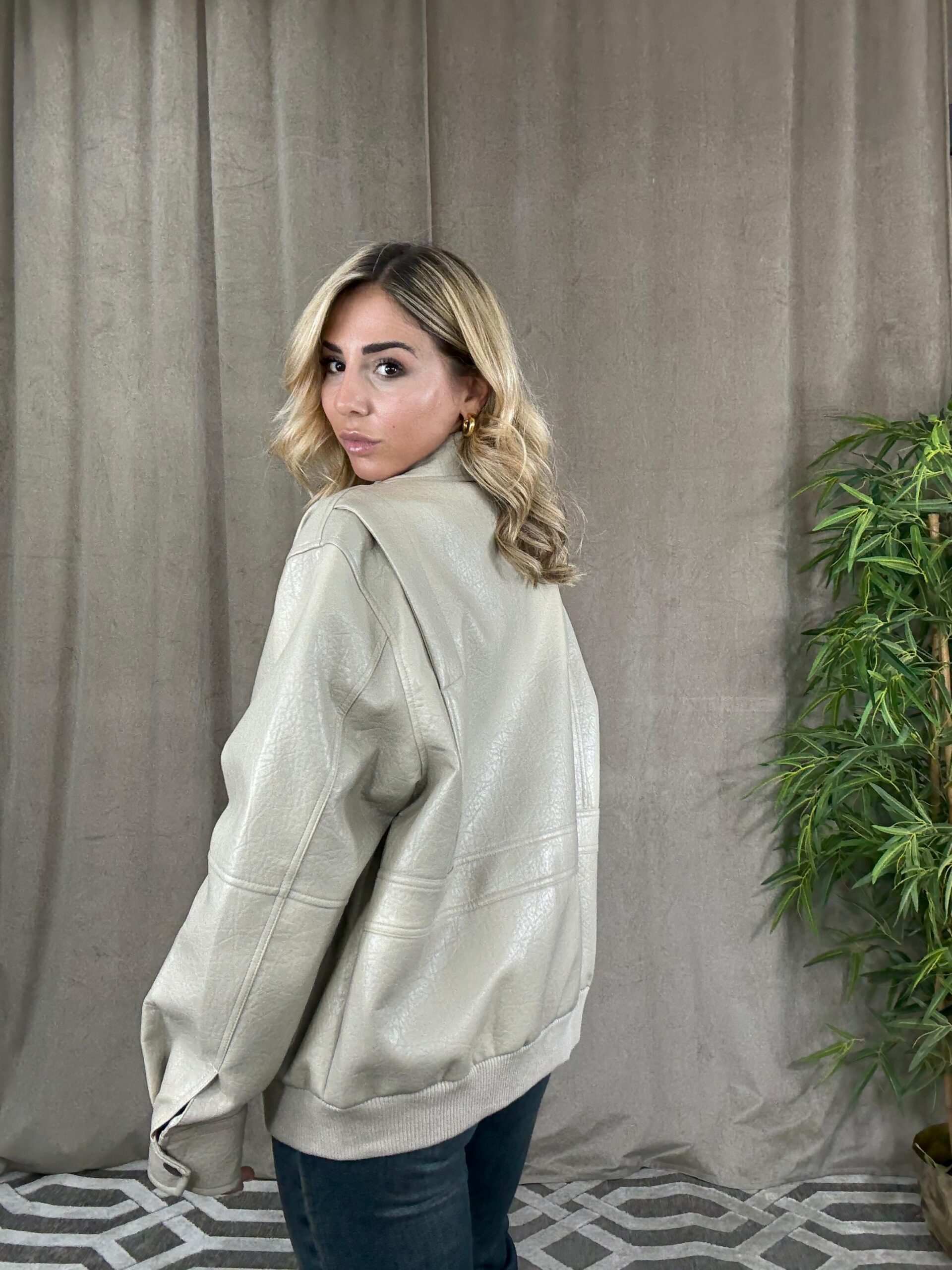 Giubbotto Over Lumina In Ecopelle Beige
