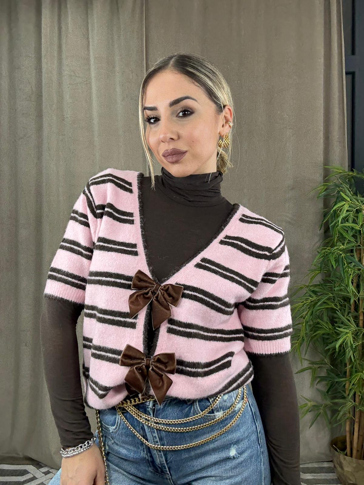 • Maglia Clara A Righe Con Fiocchetti Rosa